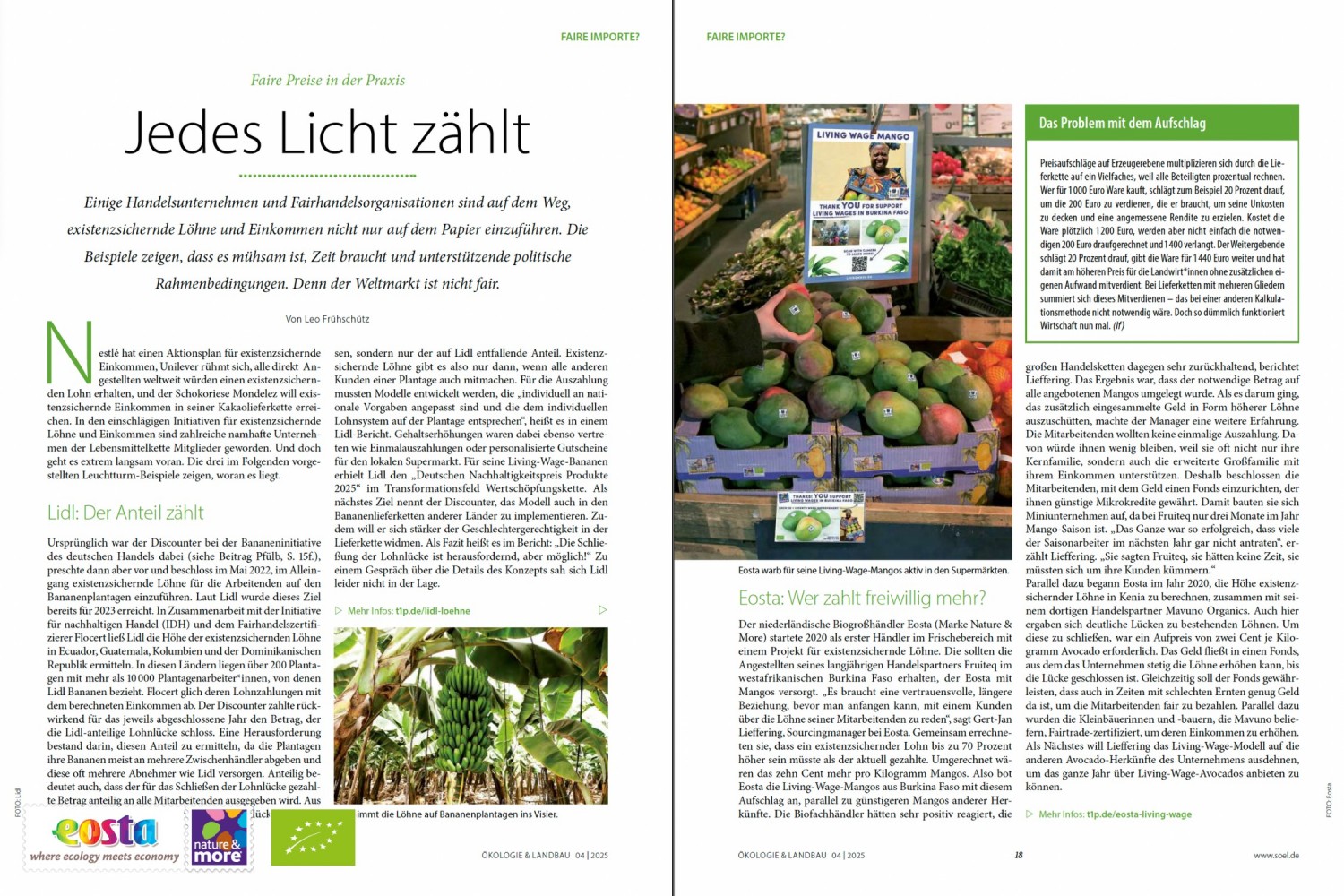 A recent issue of the German trade magazine Ökologie & Landbau featured an extensive article on Living Wage initiatives. Journalist Leo Frühschütz interviewed, among others, Eosta’s Sustainable Sourcing Manager Gert-Jan Lieffering about Eosta’s practical approach.